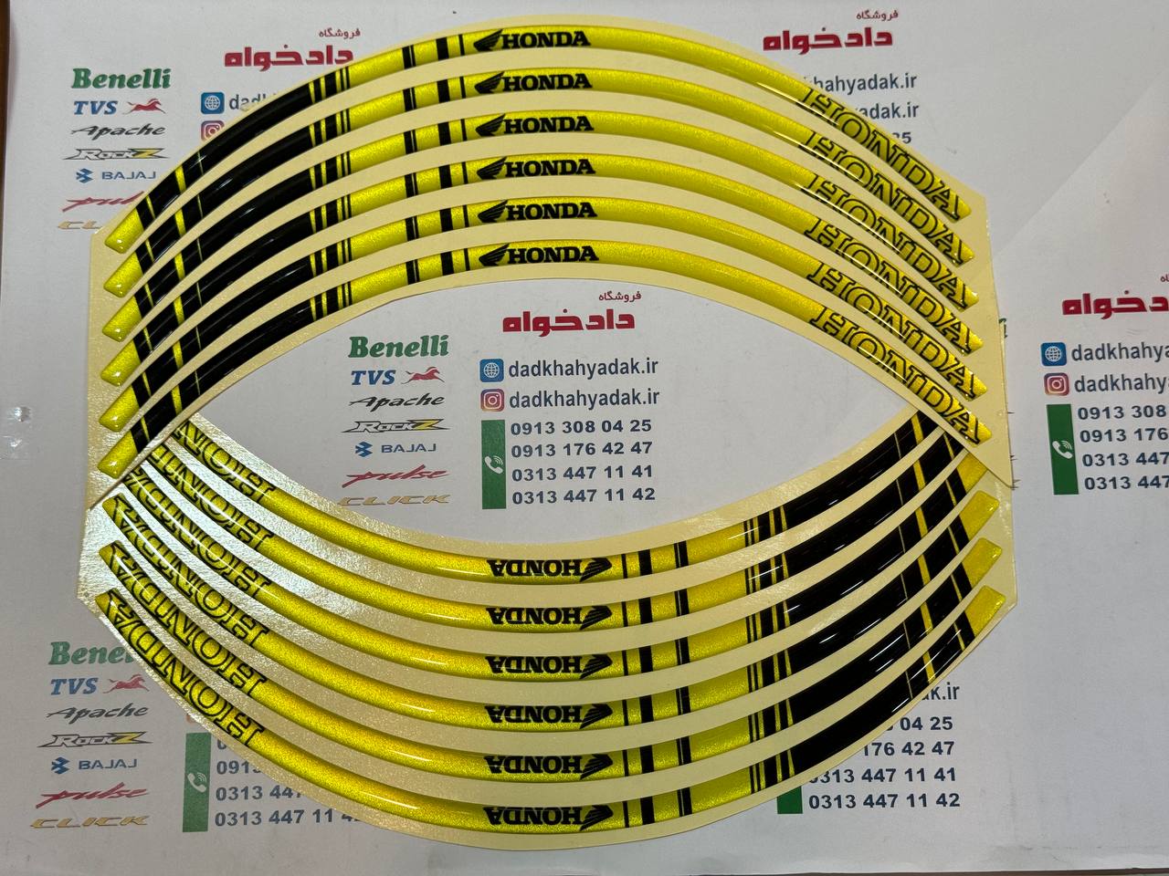 برچسب (شب رنگ) آرم دور رینگ ژله ای طرح HONDA زرد