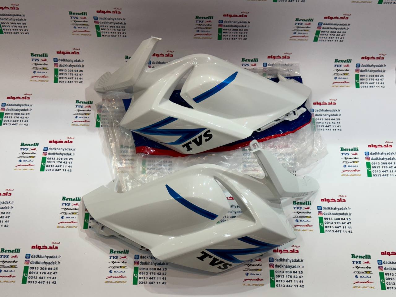 قاب(کاور) بادگیر موتور TVS راکس جدید انژکتور سفید آبی (جفتی) اصلی