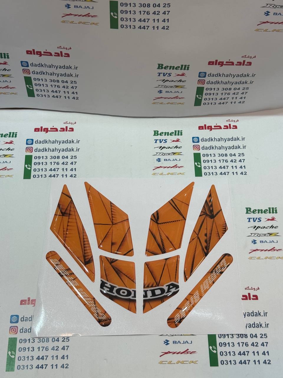 پد گلگیر (برچسب) آرم ژله ای سر گلگیر جلو موتور کلیک و های کلیک نارنجی با خط مشکی