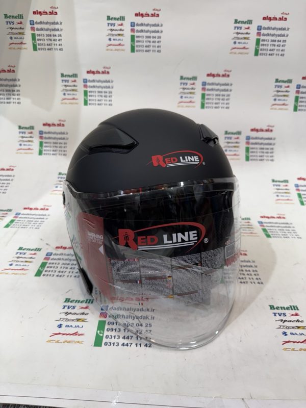 کلاه کاسکت ایمنی بدون فک عینک دار خارجی کامل مارک RED LINE مشکی مات 956 سایز ایکس لارج (xL)