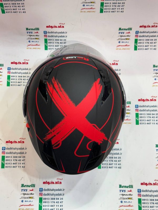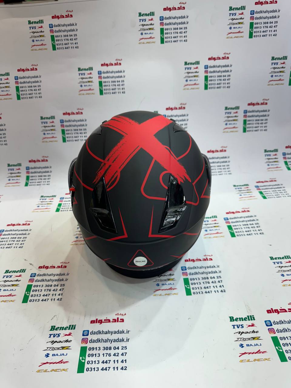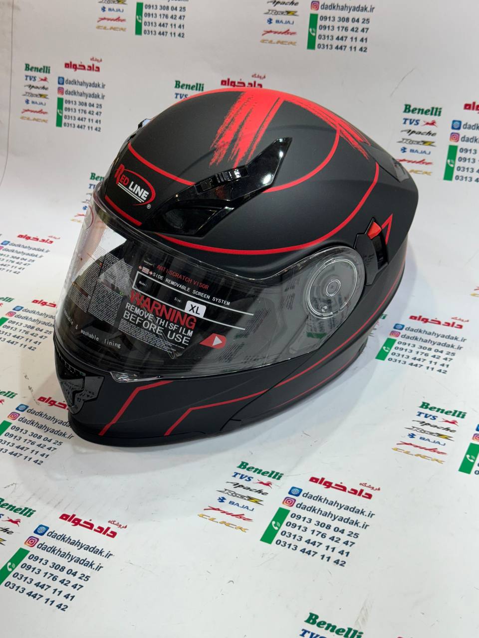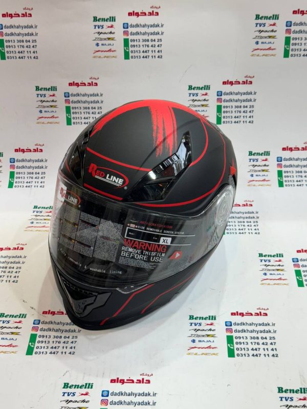 کلاه کاسکت ایمنی فک متحرک عینک دار خارجی کامل مارک RED LINE مشکی قرمز مات 939 سایز ایکس لارج (LX)