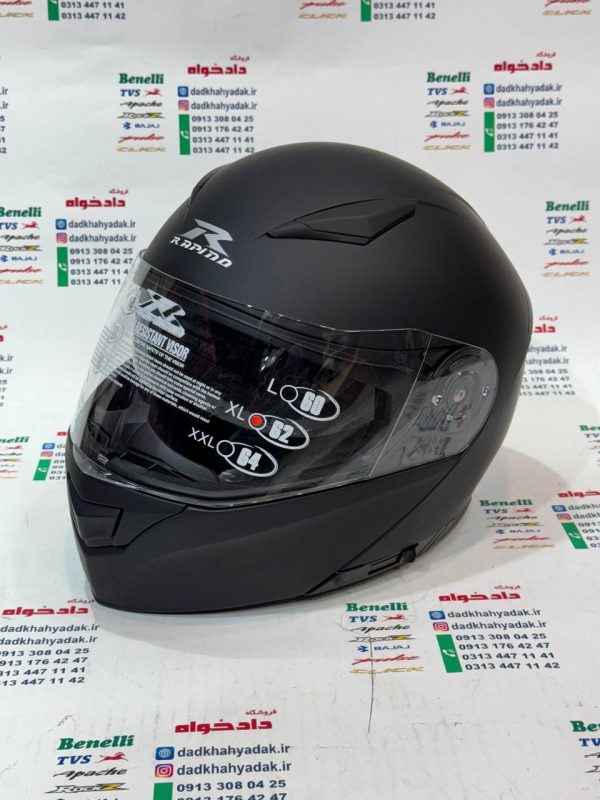 کلاه کاسکت ایمنی فک متحرک عینک دار خارجی مارک راپیدو (rapido) مشکی مات srt سایز ایکس لارج حرفه ای