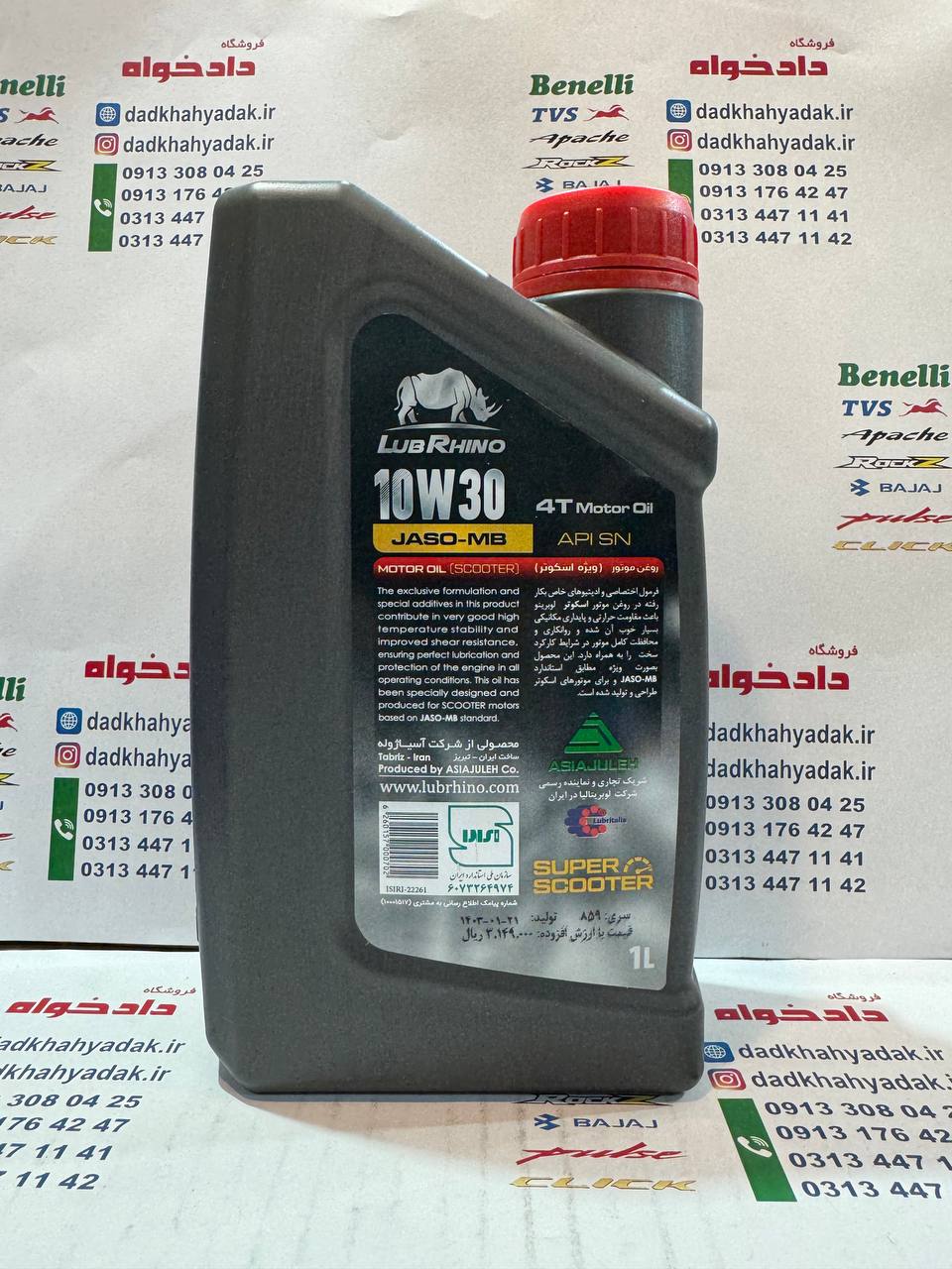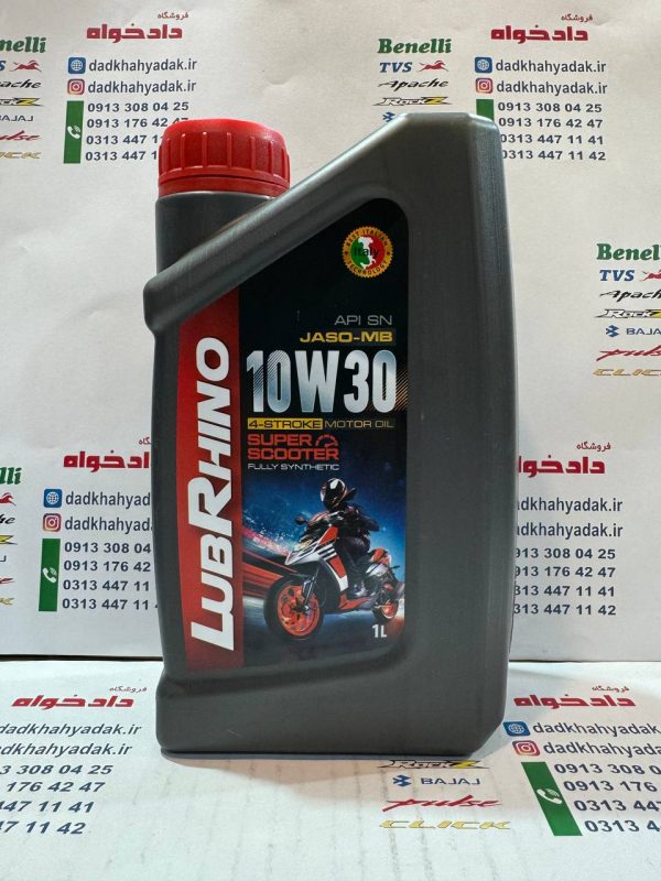 روغن موتور لوبرینو (lubrhino) (10w30) روغن موتور ویژه اسکوتر دارای فرمول اختصاصی که باعث مقاموت حرارتی و پایداری مکانیکی میشود