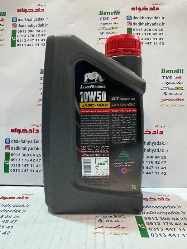 روغن موتور لوبرینو (10w50) (Jaso ma2) محصول شرکت آسیاژوله فرمول اختصاصی بکار رفته در این روغن باعث مقاومت در برابر حرارت و پایداری مکانیکی میشود و دارای استاندارد Jaso-ma2 است